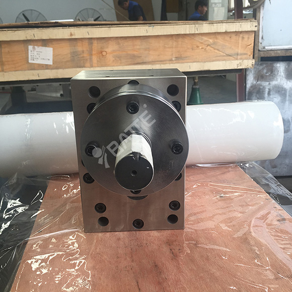 b、一般按原套泵板組裝,分組裝配紡絲計(jì)量泵的主體。先裝上齒輪試轉(zhuǎn),再裝上蓋板,如是高壓泵還須壓入定位套,然后再試轉(zhuǎn)主軸,確認(rèn)靈活性,如無阻滯現(xiàn)象,用力矩扳子擰緊螺釘。